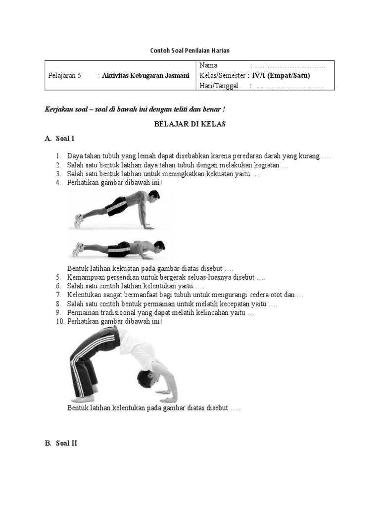 Contoh Soal Kebugaran Jasmani Dengan from imgv2-1-f.scribdassets.com From i1.wp.com memotivasi siswa dengan menjelaskan manfaat aktivitas senam lantai untuk kebugaran jasmani, untuk membangun sikap keberanian. Pembelajaran pjok kebugaran jasmani smk. Jelaskan pengertian daya tahan otot 4. Kesanggupan tubuh untuk melakukan aktivitas tanpa mengalami kelelahan yang berarti dan masih memiliki cadangan tenaga untuk melakukan kegiatan yang lain disebut. Jun 05, 2021 · download soal kebugaran jasmani kurikulum 13. Penjas online worksheet for kelas 4. Download soal kebugaran jasmani kurikulum 13 : Download ppt aktivitas kebugaran jasmani | pjok kelas ix kurikulum 2013 daftar isi tampil searchperangkat.com | pada kesempatan kali ini admin akan membagikan media pembelajaran powerpoint ppt pjok materi pembelajaran aktivitas kebugaran jasmani kurikulum 2013 revisi terbaru.